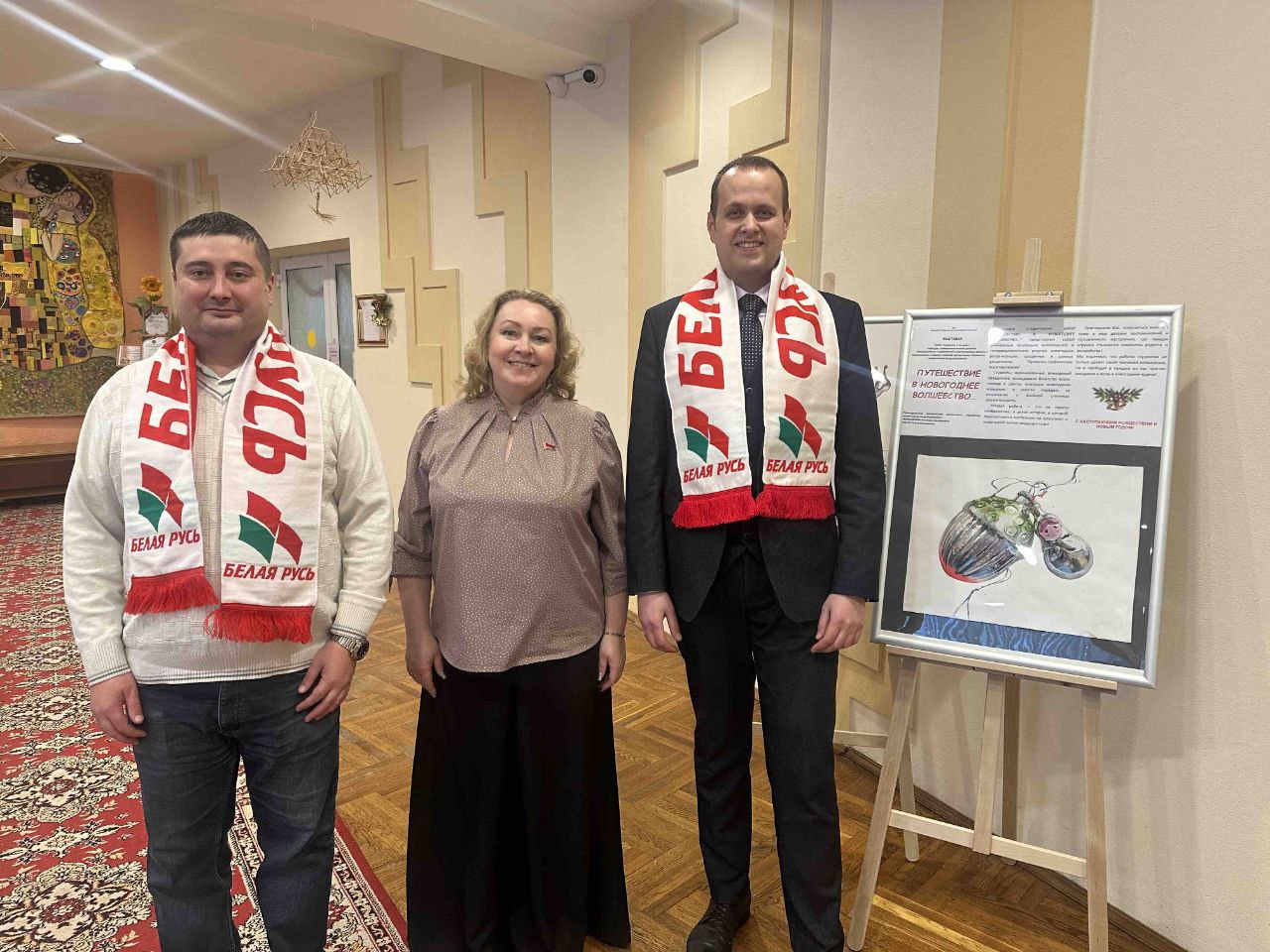 30.12.2025 представители «Белой Руси» БГУ – заместитель председателя, декан ФСК Александр Бурачонок и заместитель декана по идеологической и воспитательной работе ФСК Дмитрий Лебедь в рамках Республиканской благотворительной акции для пожилых «От всей души» открыли выставку картин студентов ФСК «Новогодние фантазии» в ГУ «Минский городской социальный пансионат ИСТОК». Работы выполнены студентами специальности «Графический дизайн и мультимедиадизайн» под руководством старшего преподавателя кафедры коммуникативного дизайна ФСК Виктории Иконниковой.
